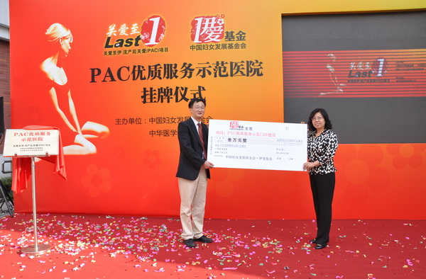 会上,邬惊雷院长还代表妇产科医院接受了中国妇女发展基金会“伊爱基金”的首批资助,以更好继续PAC门诊示范工作,为流产后女性提供咨询服务、促进落实避孕措施、保护流产后女性的生殖健康。